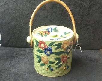Pottery Crock Basketweave Pattern Embossed Flowers Vines Etsy